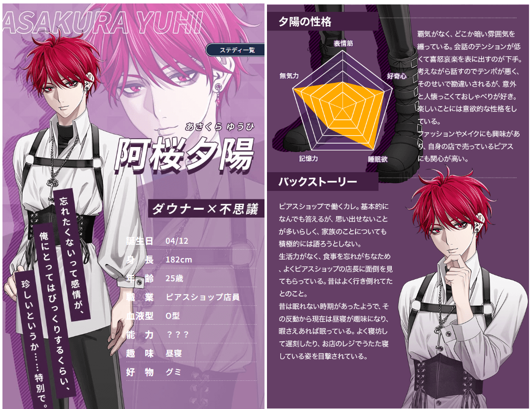 そういえば○○の能力をうまく使ってスマートに助けてくれたな……!とか、あの時おかしかったのは彼の××が原因だったんだ…!とか、いろいろと伏線が多く、会話をして彼の真実に近づいていくのが楽しいですよ。